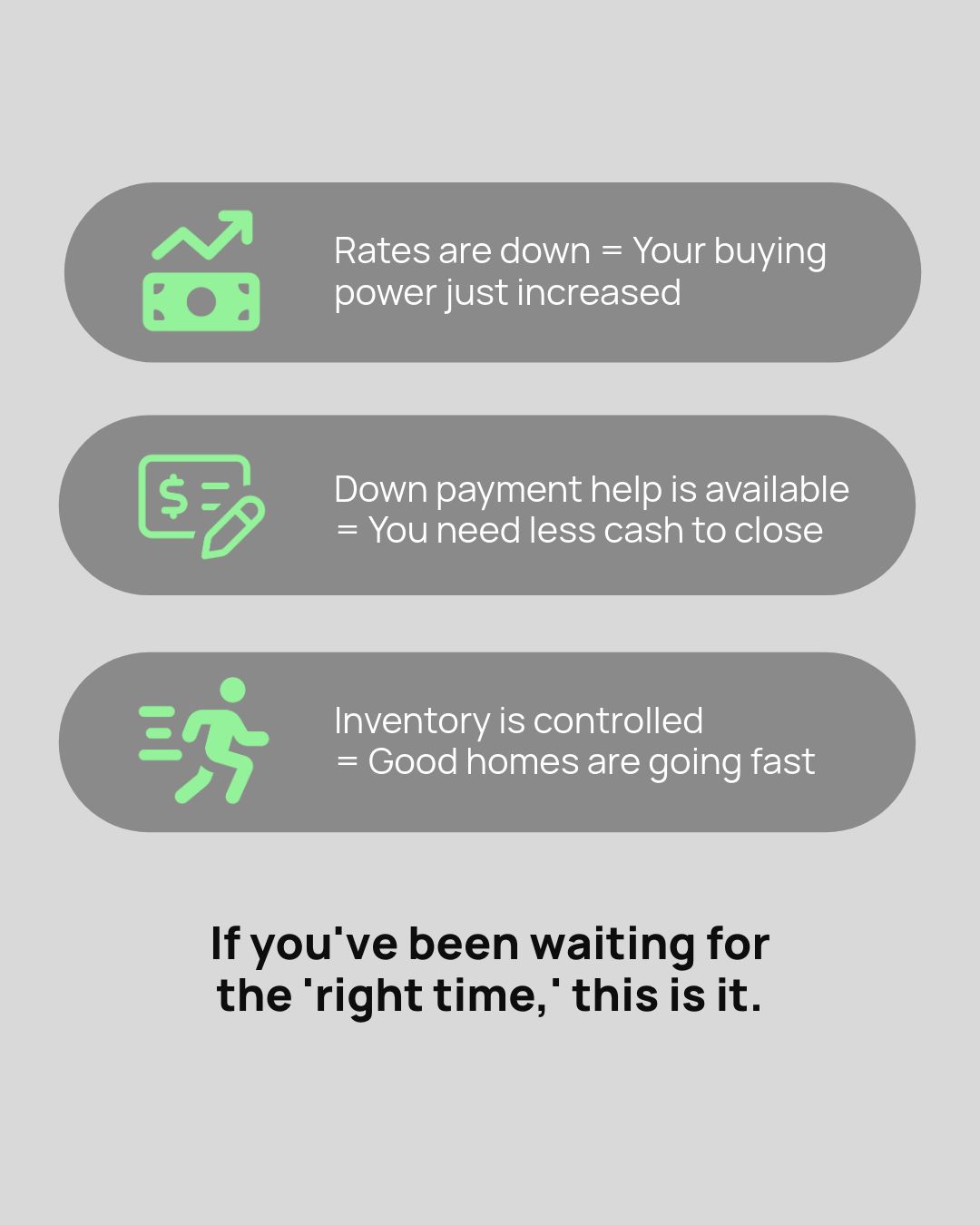P.S. If you know anyone who’s been sitting on the sidelines waiting to buy, send this to them. This is too good to keep a secret.